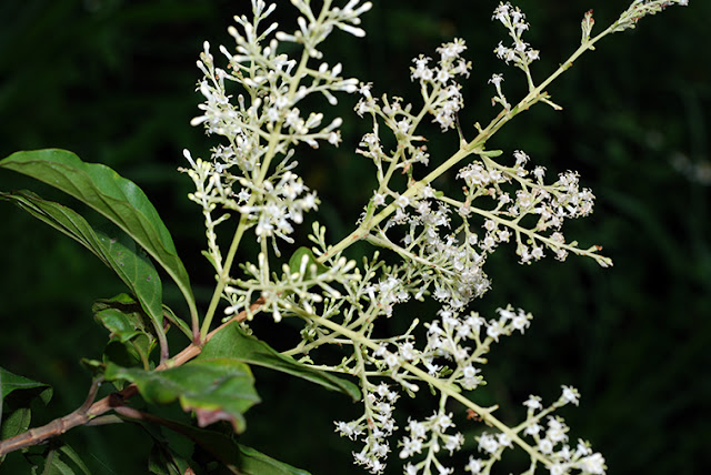 最近(7月底到8月初)到郊野,常可看到一種喬木-樹皮紅褐色,具明顯縱裂紋,葉對生,成串的小白花,生於枝端。他可能就是本文的主角-水金京。