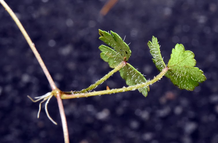 若不細查(葉上被毛),你會以為他就是台灣天胡荽。葉寬1-2cm,5深裂,裂片鈍齒緣。 |