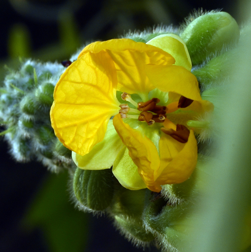 1~1.5 公分,先端銳尖,常早落。花鮮黃色,2~8 枚呈很短的總狀花序,花序很少超過 2 公分,腋生或頂生;花梗長 1.2~1.5 公分,細長,有毛茸;萼片卵形,長